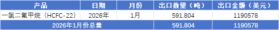 2026年1月份中国一氯二氟甲烷(HCFC-22)出口统计(总量)