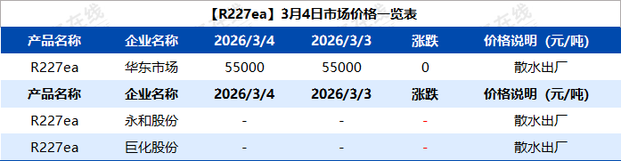 【R227ea】3月4日市场价格一览表