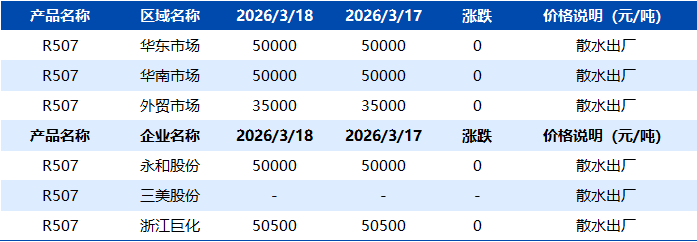 【R507】3月18日市场价格一览表
