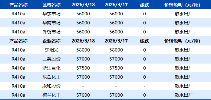 【R410a】3月18日市场价格一览表