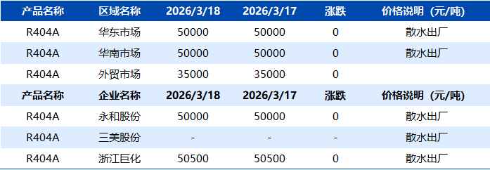 【R404】3月18日市场价格一览表