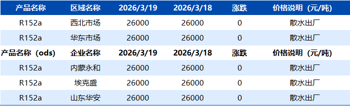 【R152a】3月19日市场价格一览表