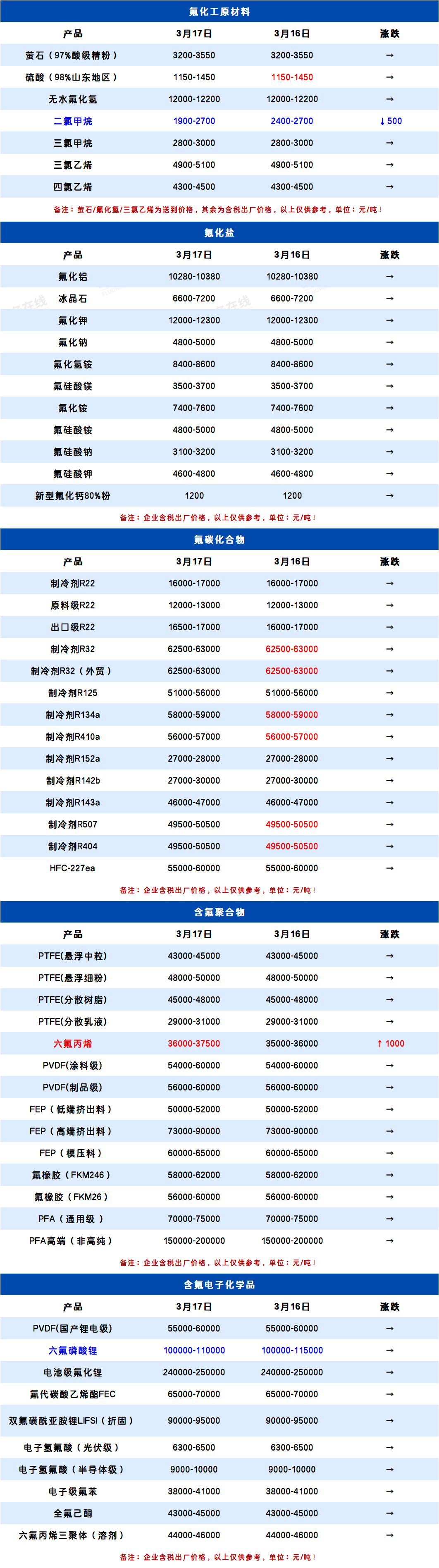 所属分类:全产业链价格表 阅读次数:111 发布时间:2026-03-17 内容来源:氟务在线