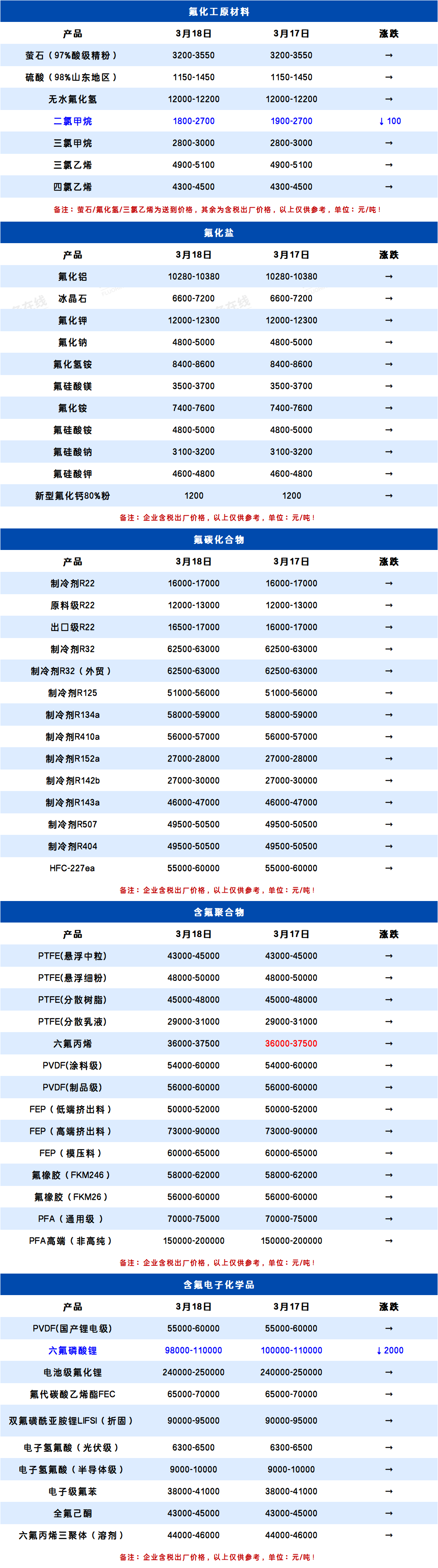 所属分类:全产业链价格表 阅读次数:61 发布时间:2026-03-18 内容来源:氟务在线