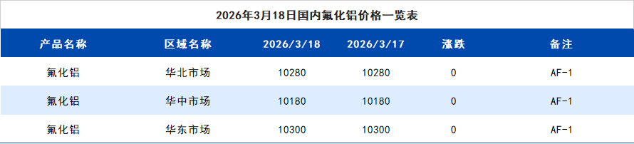 2026年3月18日国内氟化铝价格一览表