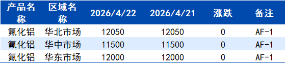 2026年4月22日国内氟化铝价格一览表