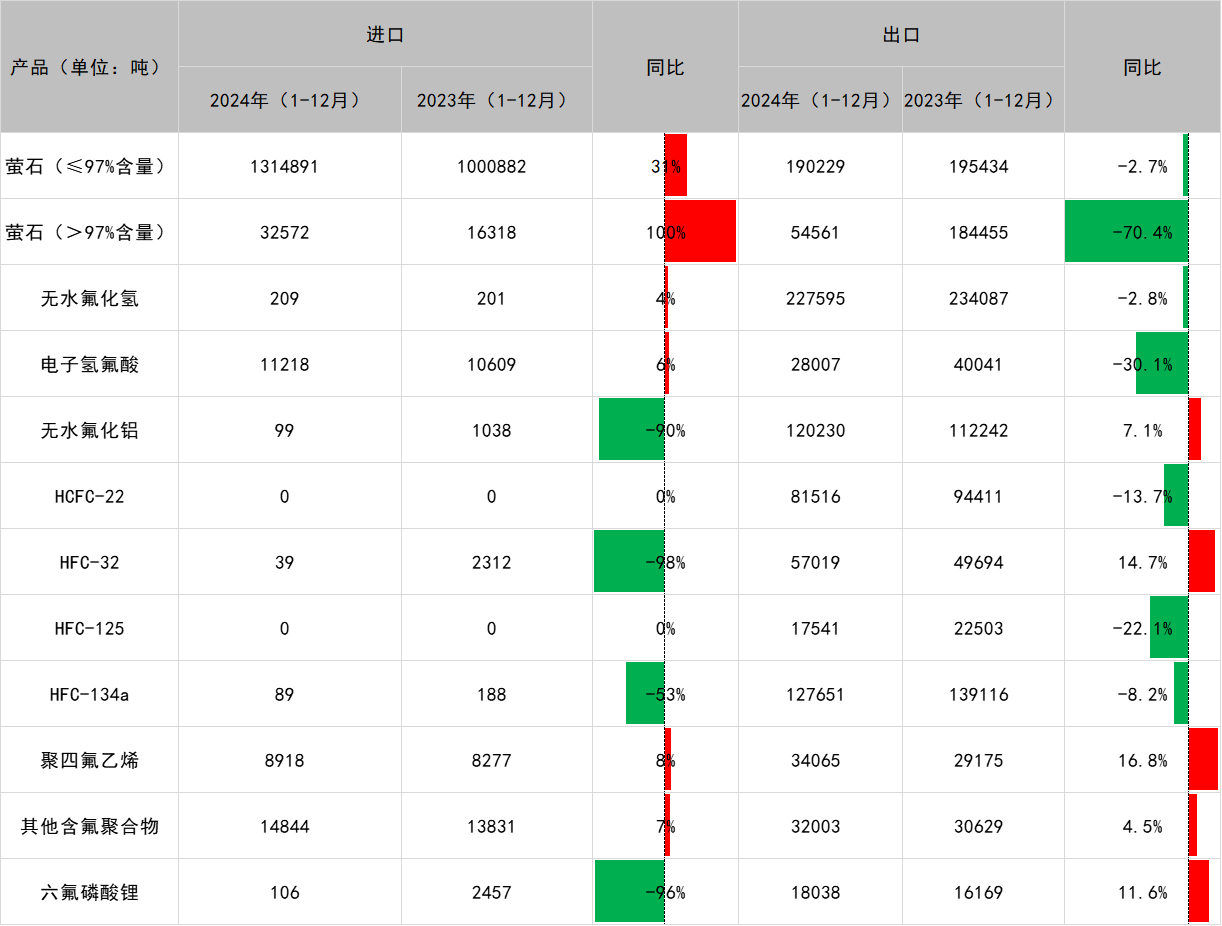 表:2024年12月氟化工产业链进出口数据