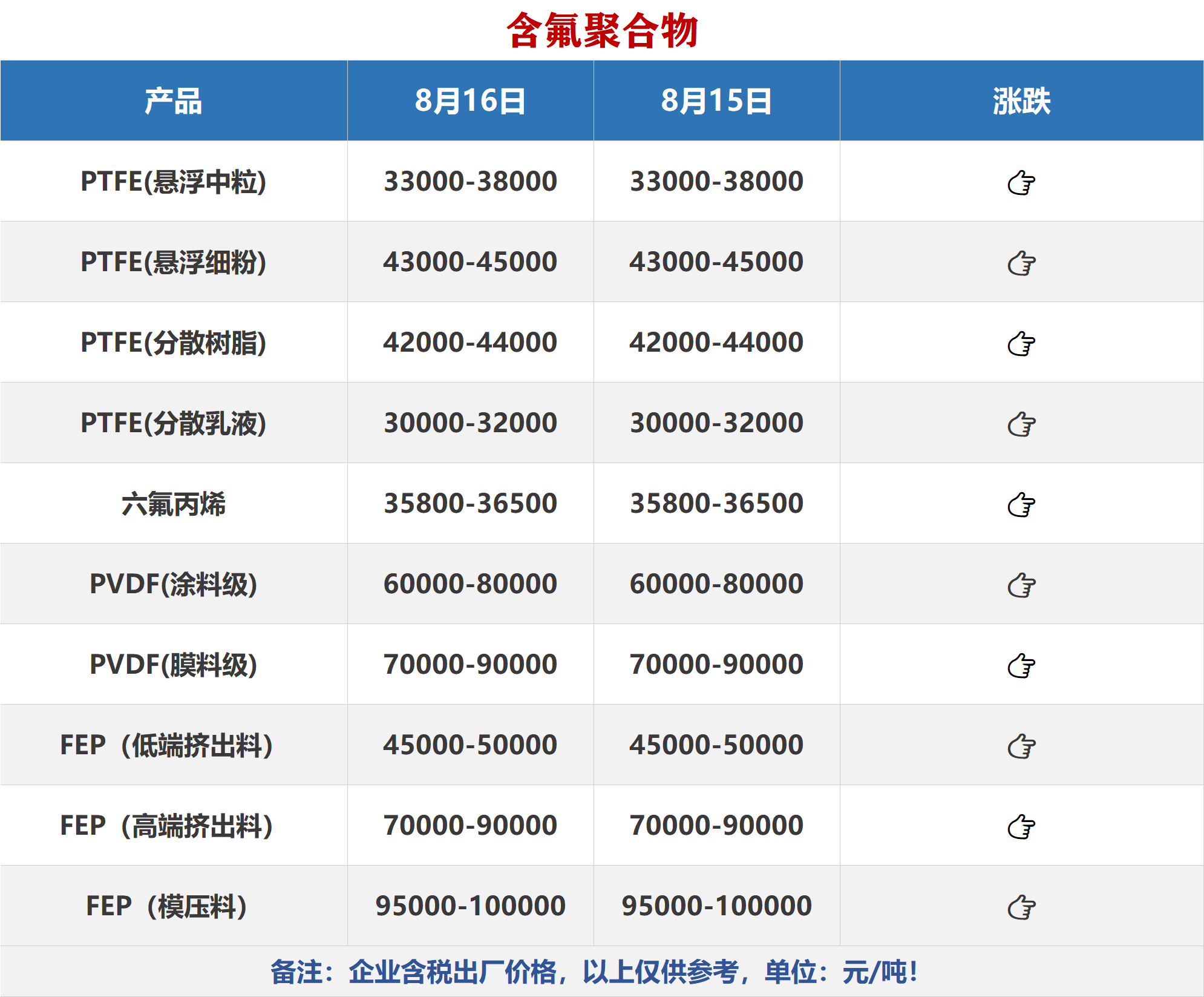8月16日氟化工产业链价格表