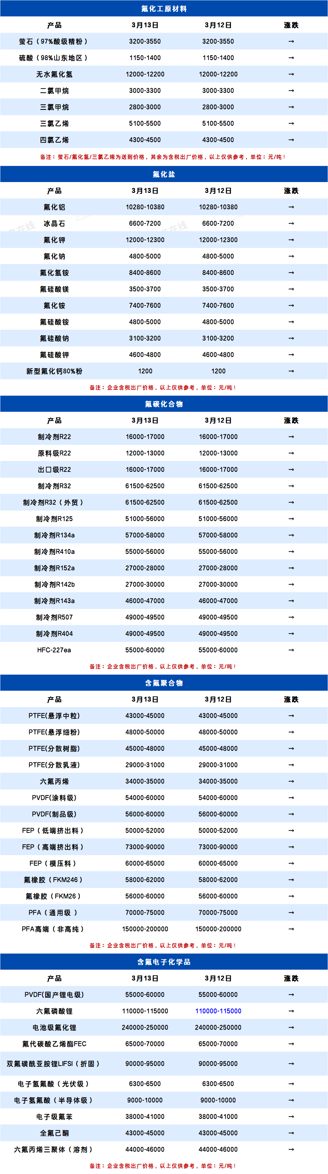 所属分类:全产业链价格表 阅读次数:37 发布时间:2026-03-13 内容来源:氟务在线