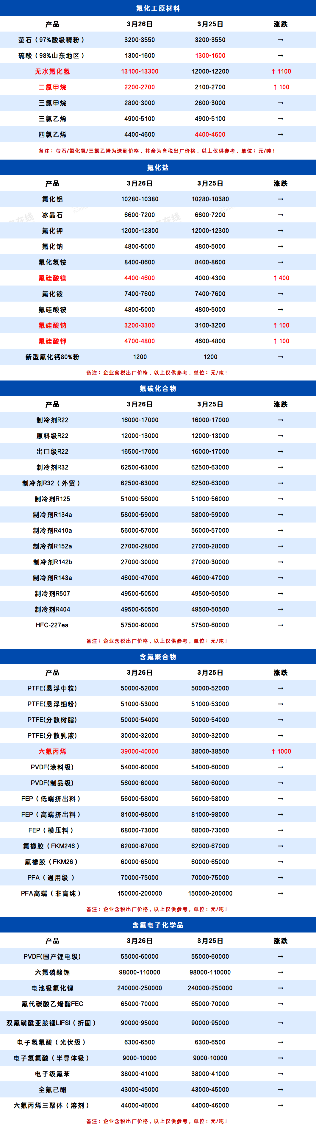 所属分类:全产业链价格表 阅读次数:53 发布时间:2026-03-26 内容来源:氟务在线