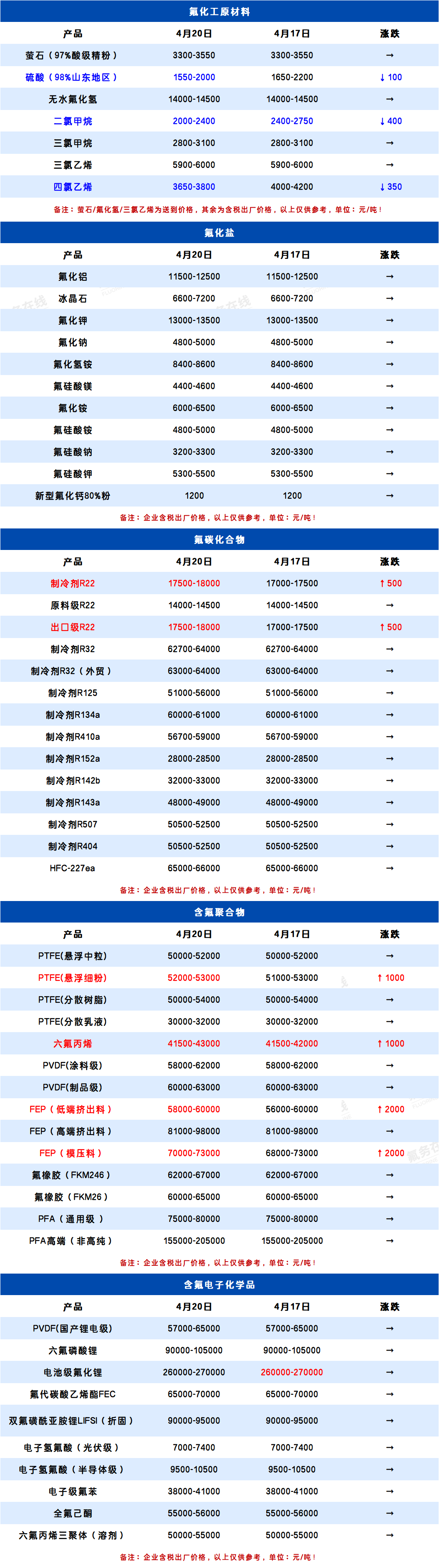 所属分类:全产业链价格表 阅读次数:105 发布时间:2026-04-20 内容来源:氟务在线