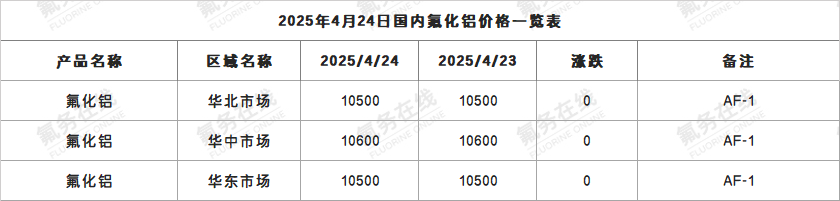 2025年4月24日国内氟化铝价格一览表