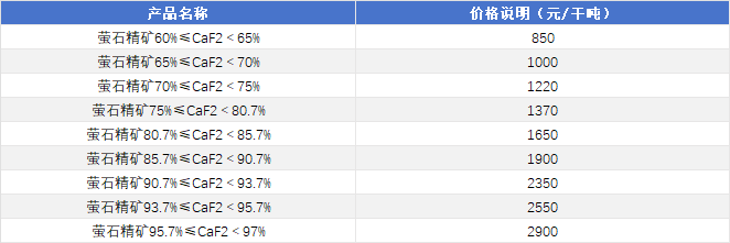11月19日湖南柿竹园萤石精矿价格平稳